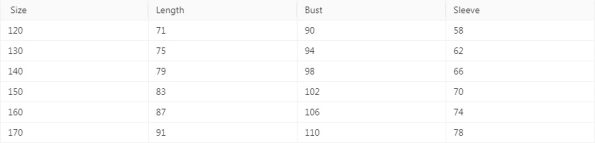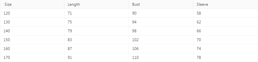 Size: 120cm, 130cm, 140cm, 150cm, 160cm, 170cm