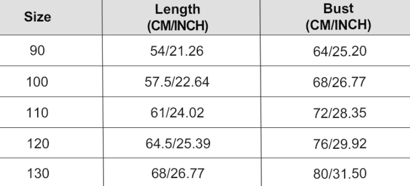 | Child size | 100cm, 110cm, 120cm, 130cm, 90cm |
