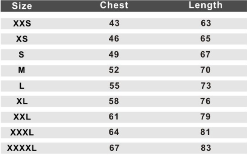Size: XXS XS S M L XL XXL XXXL XXXXL