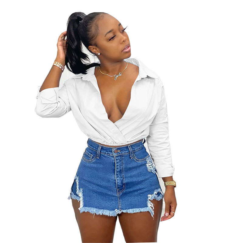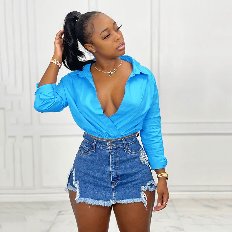 Fall New Style Solid Color Casual Sexy V-neck Shirt Women’s Blouse