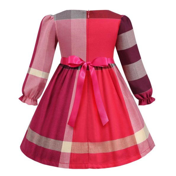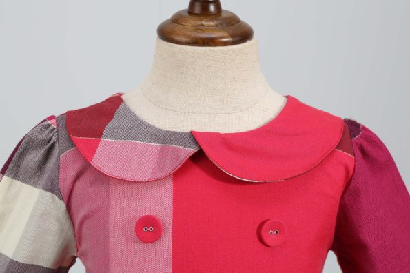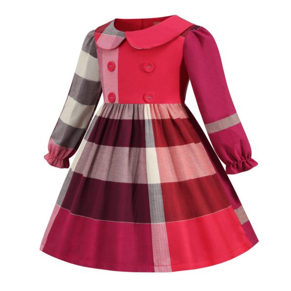 Girls Lapel Double Breasted Long Sleeve Plaid Skirt