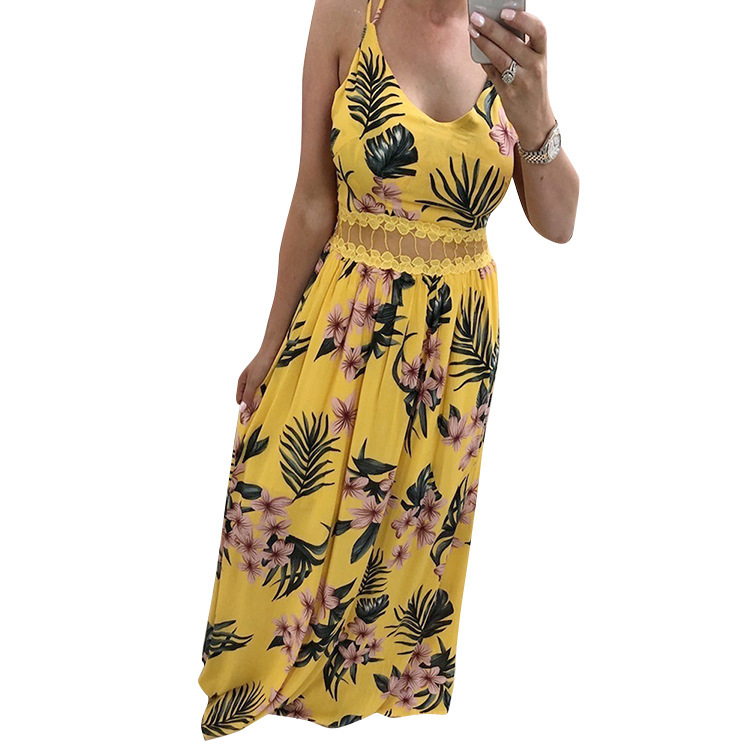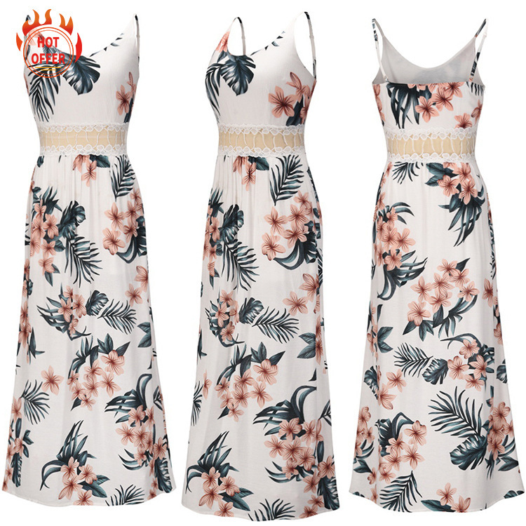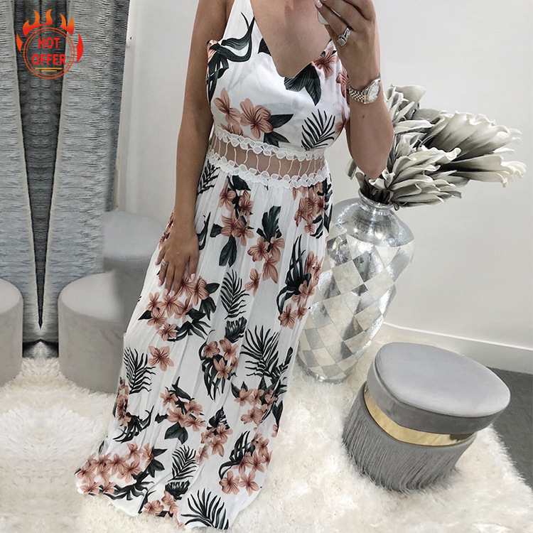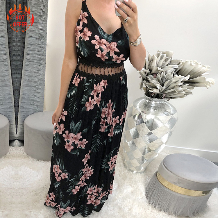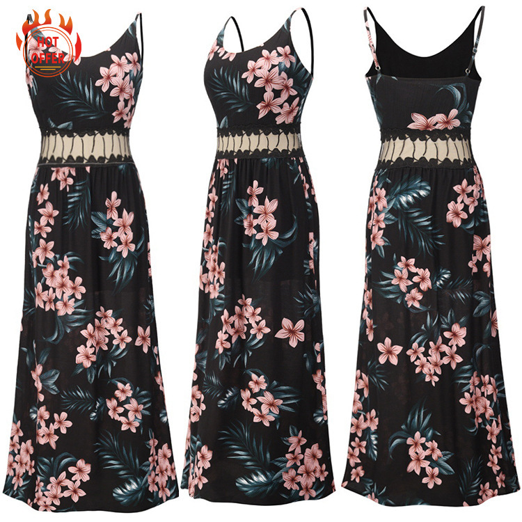Ladies Fashion Sling Lace Printed Dress