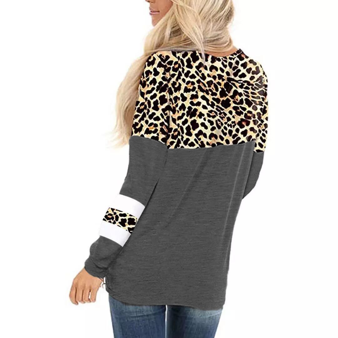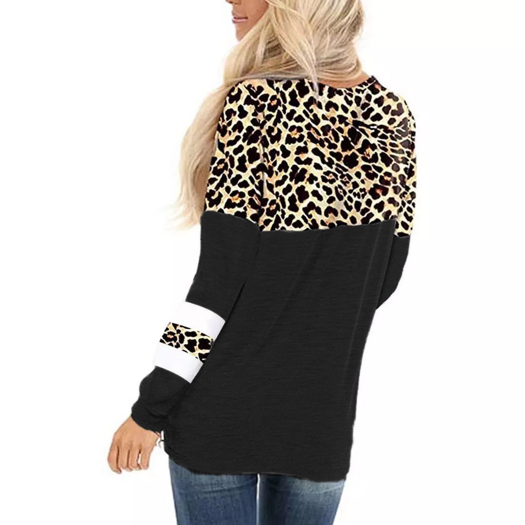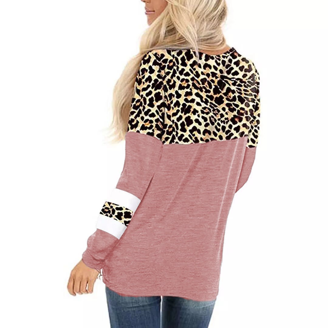 Leopard Print Round Neck Long Sleeve T-shirt Bottoming Shirt