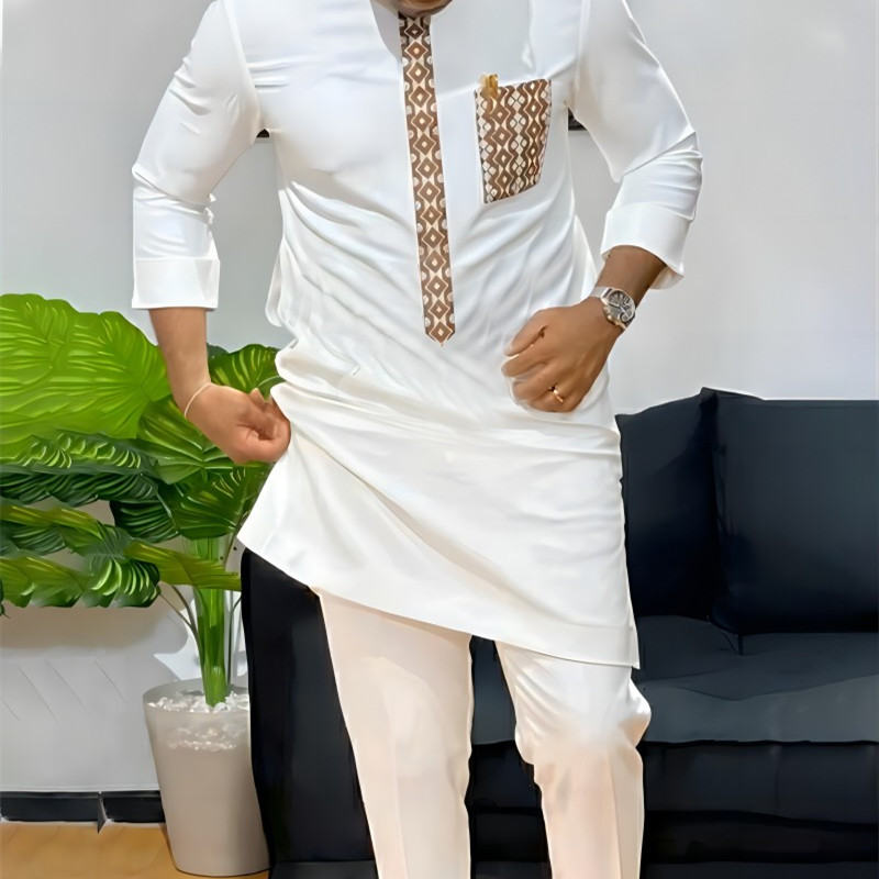 Men’s Fashion Casual Embroidered Shirt Drawstring Pants Set
