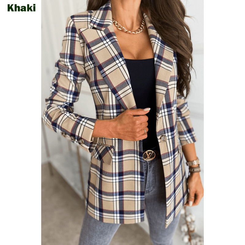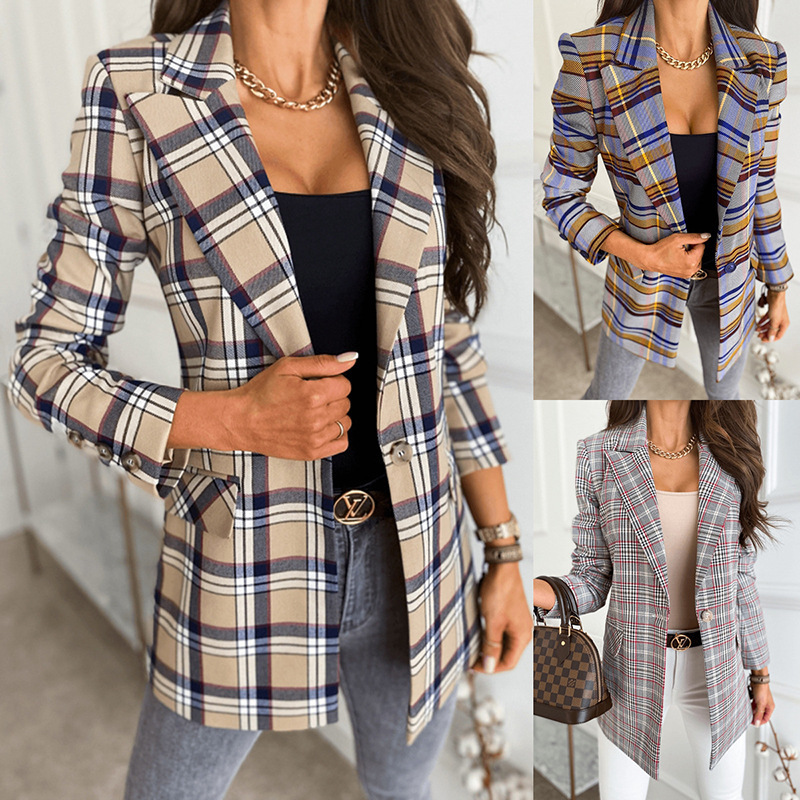 New European And American Women’s Long-sleeved Plaid Print Jacket Small Suit
