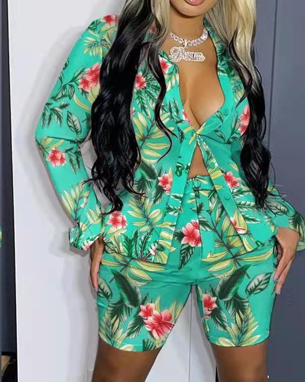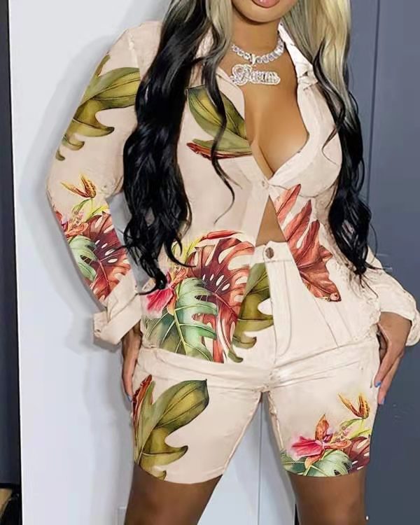 New Women’s Fashion Casual Printed Shirt Pants Two-piece Set