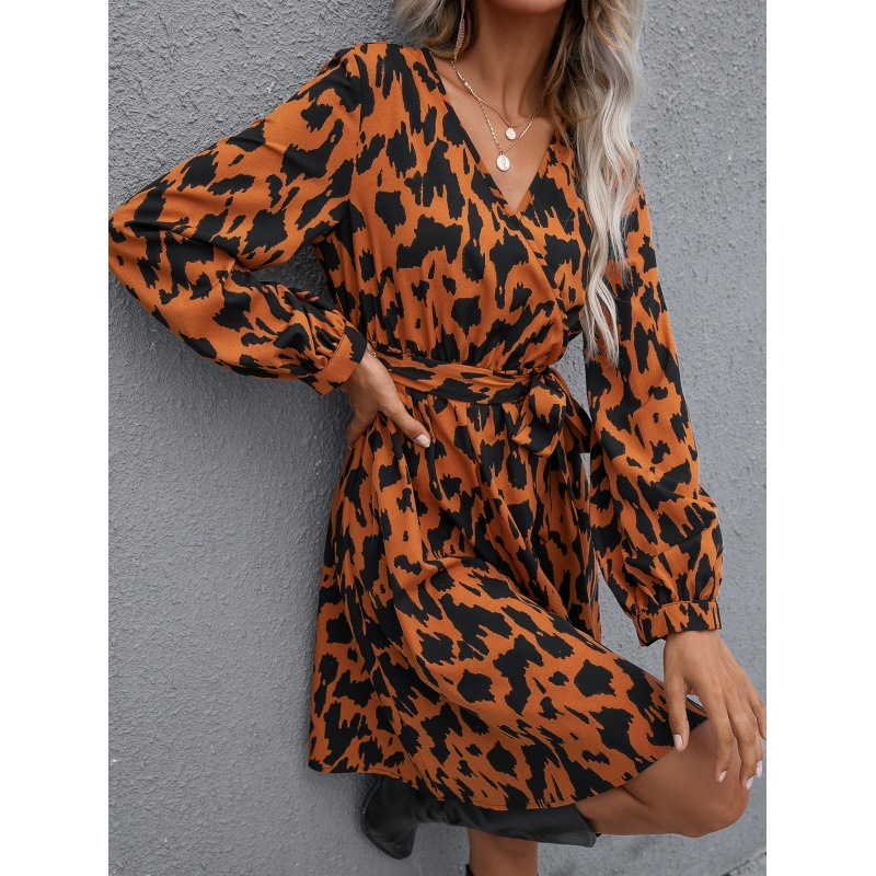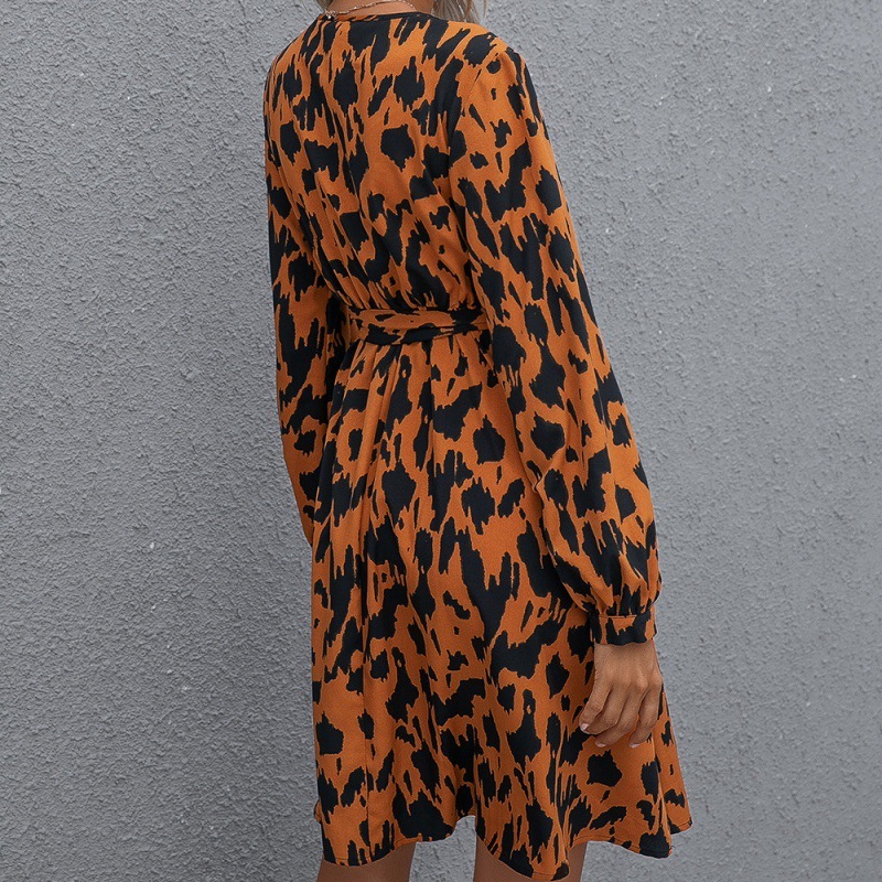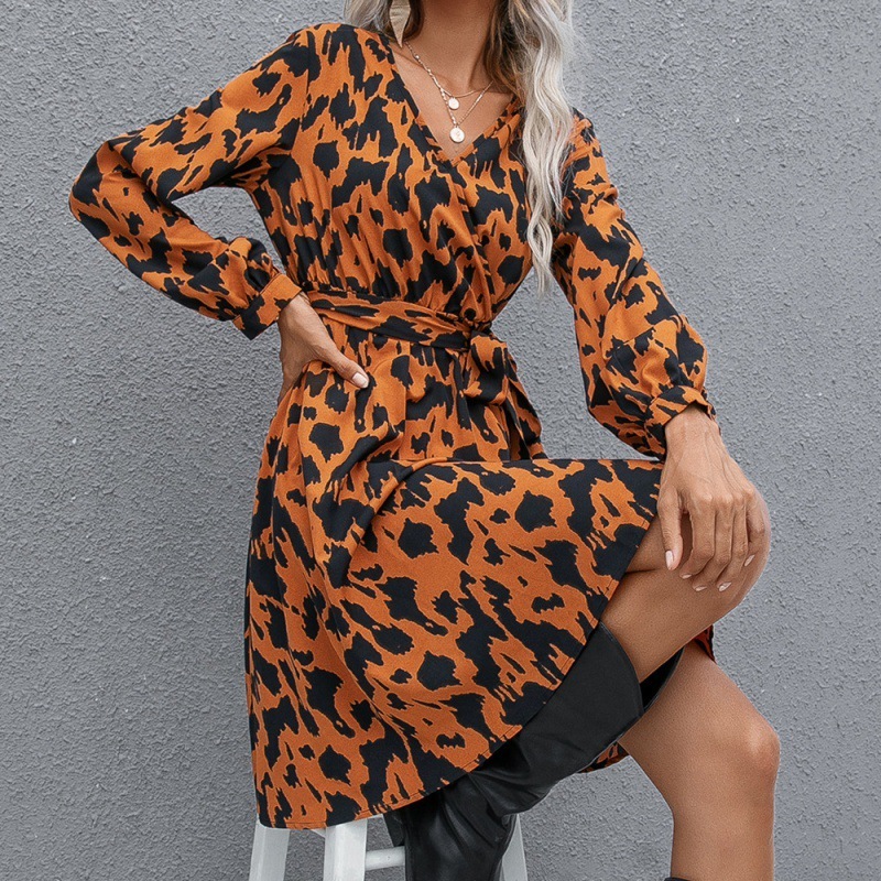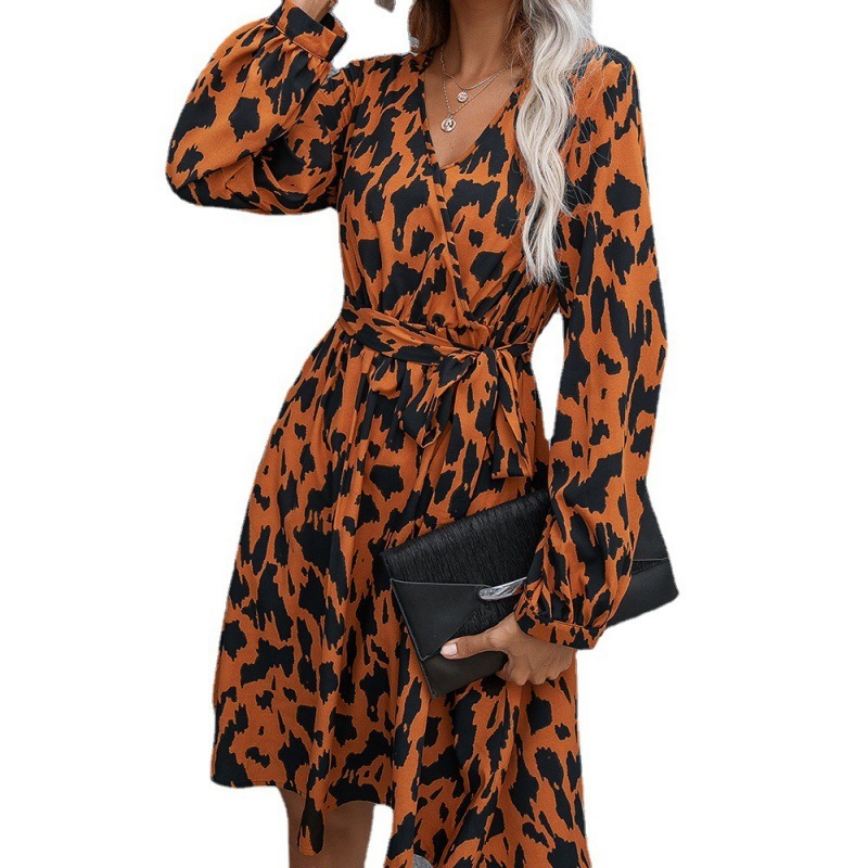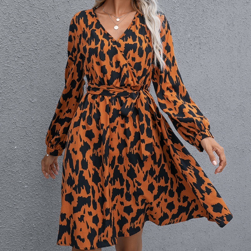 Printed Tie Cross V-neck Long Sleeve Women