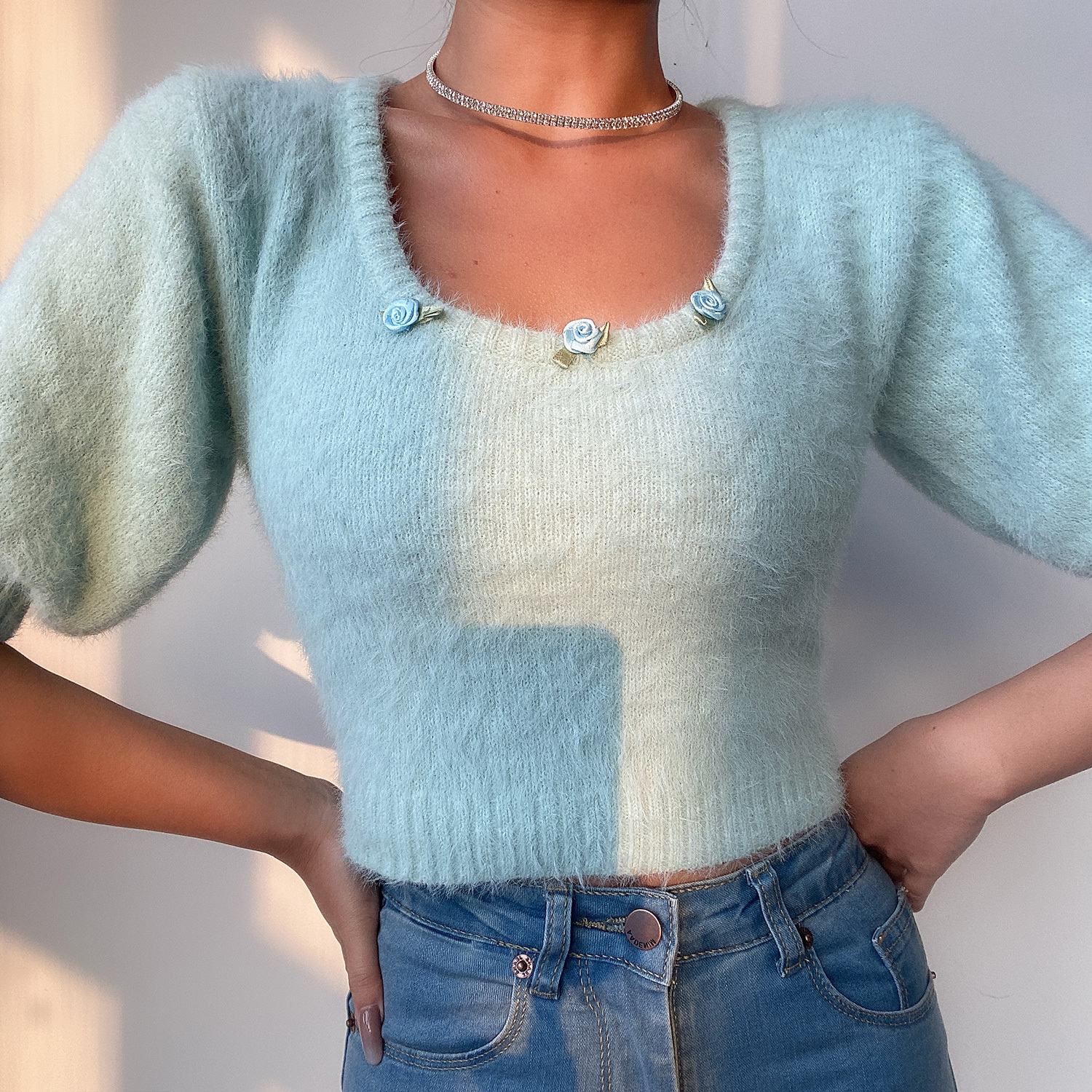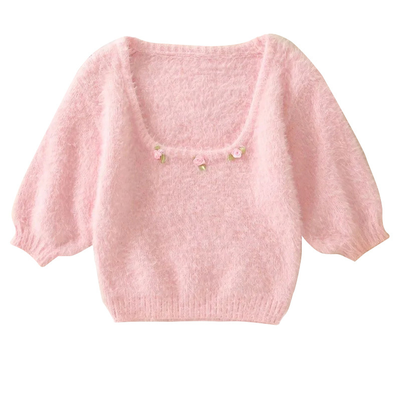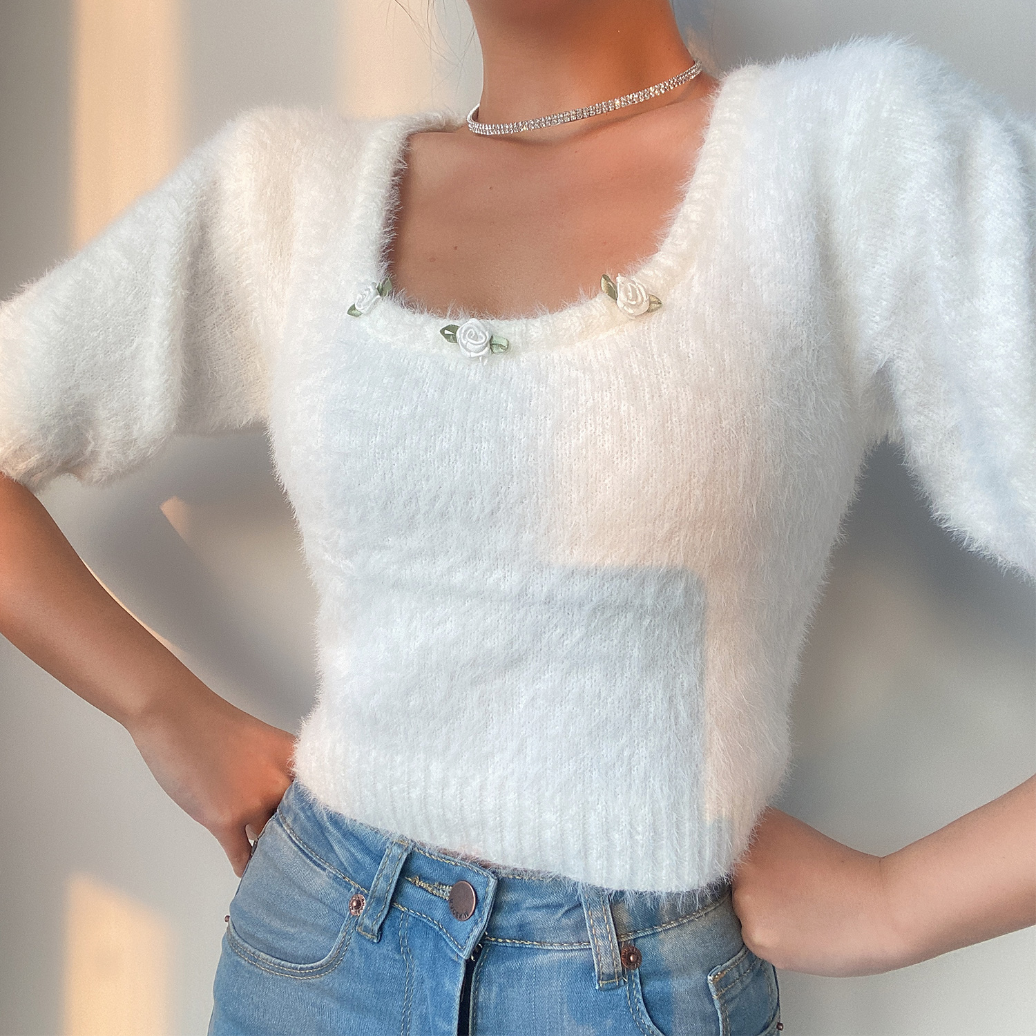 Pullover Waist Plush Short-sleeved Knit Sweater