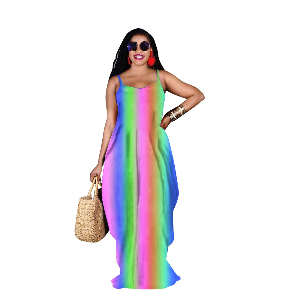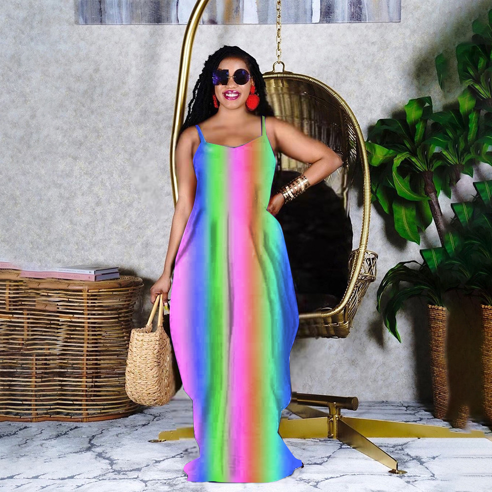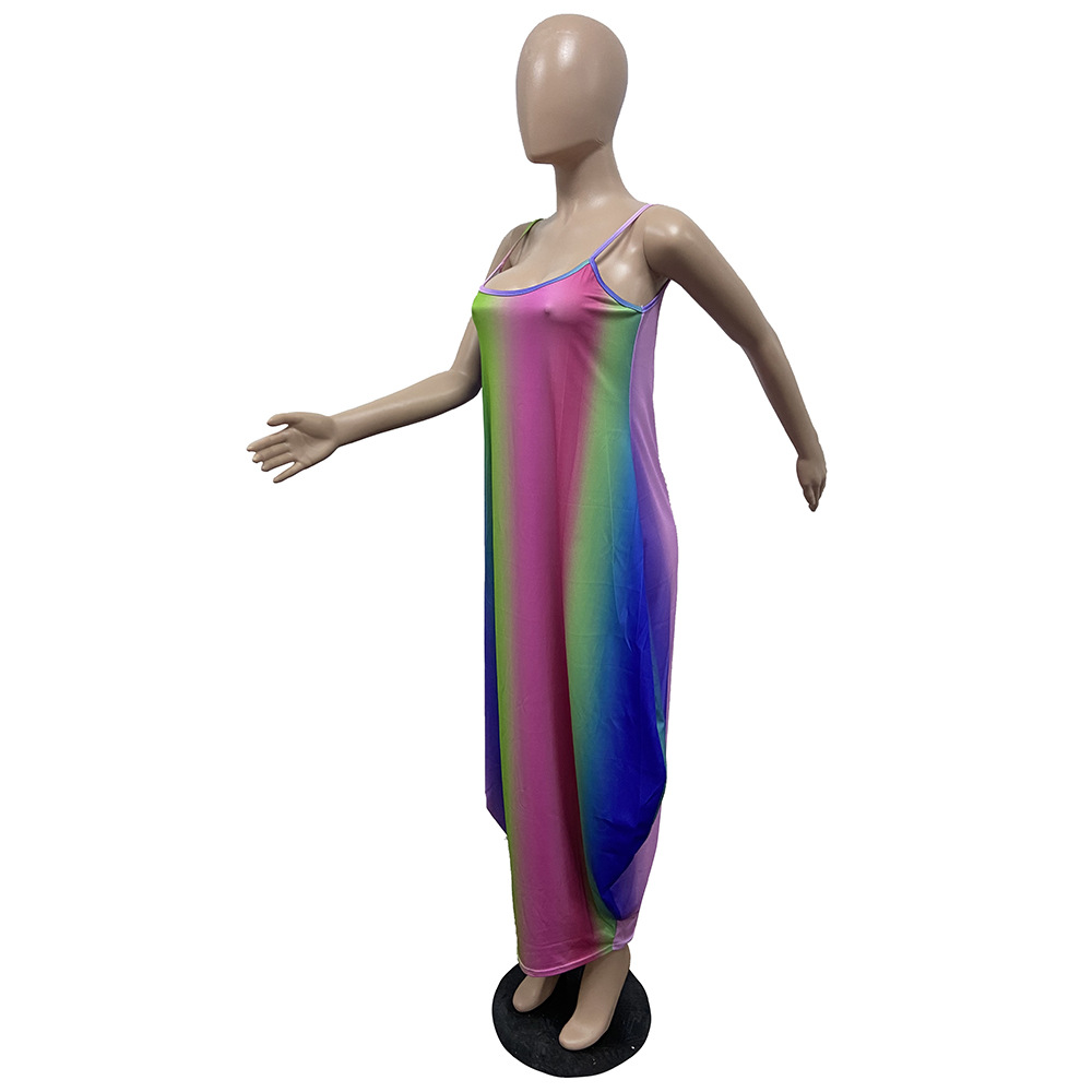 Rainbow Print Loose Slip Dress Maxi Dress