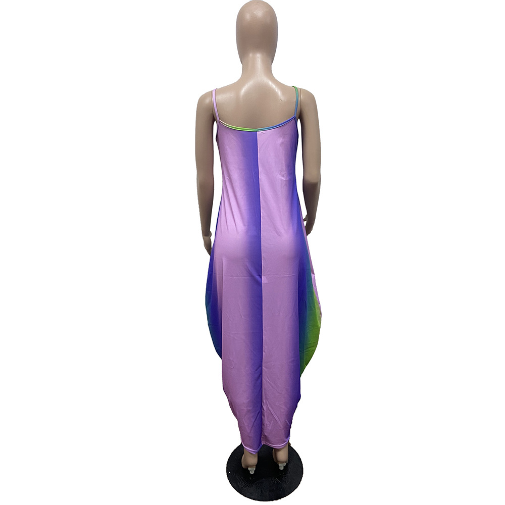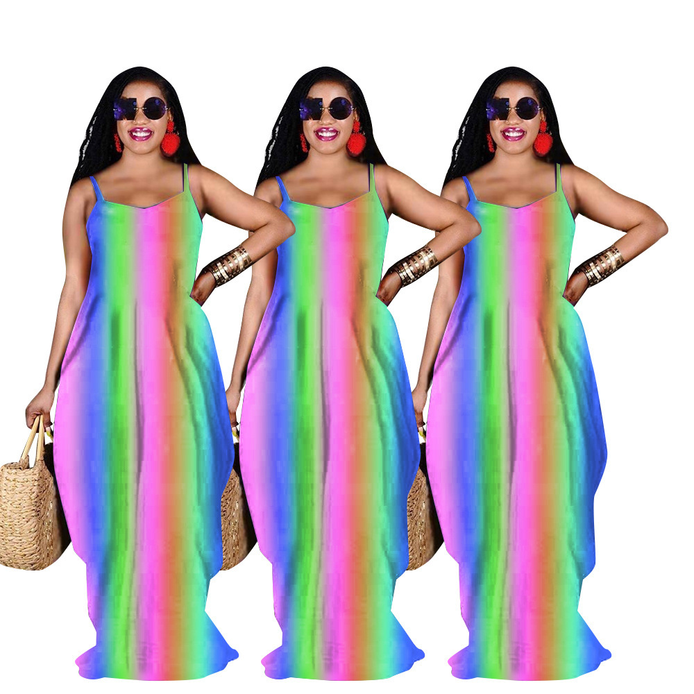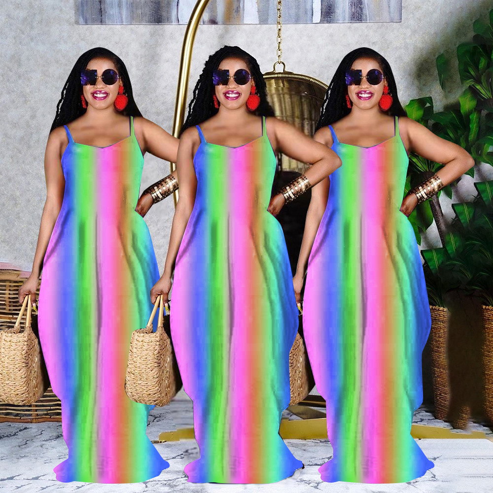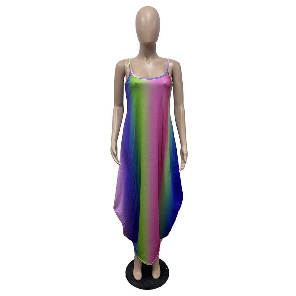 Rainbow Print Loose Slip Dress Maxi Dress