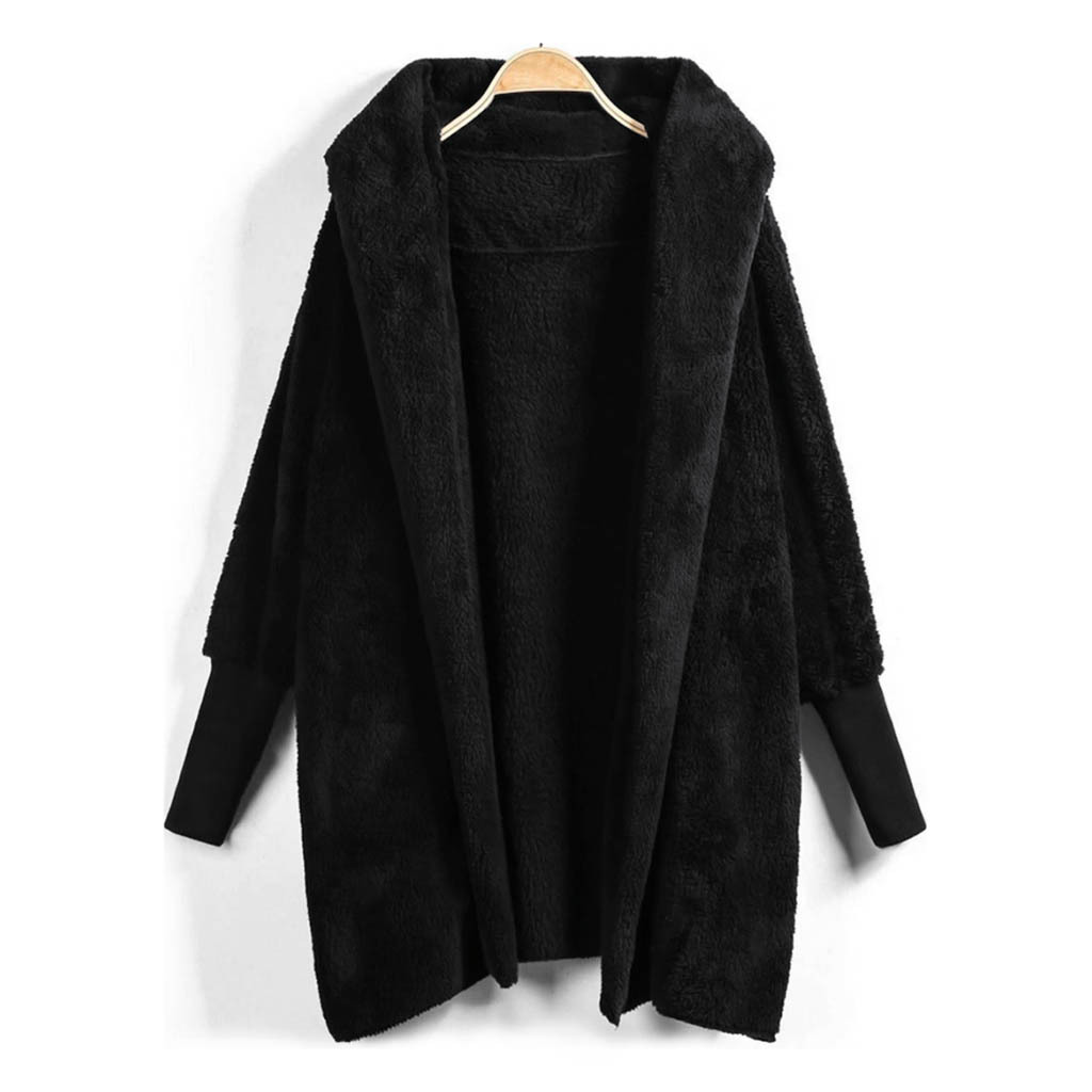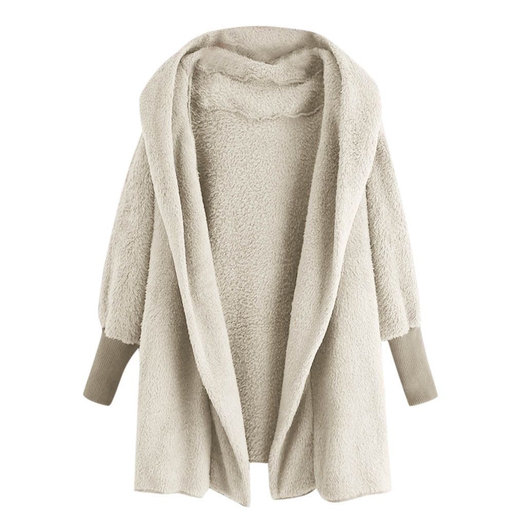 Reversible fleece hooded threaded cuff coat