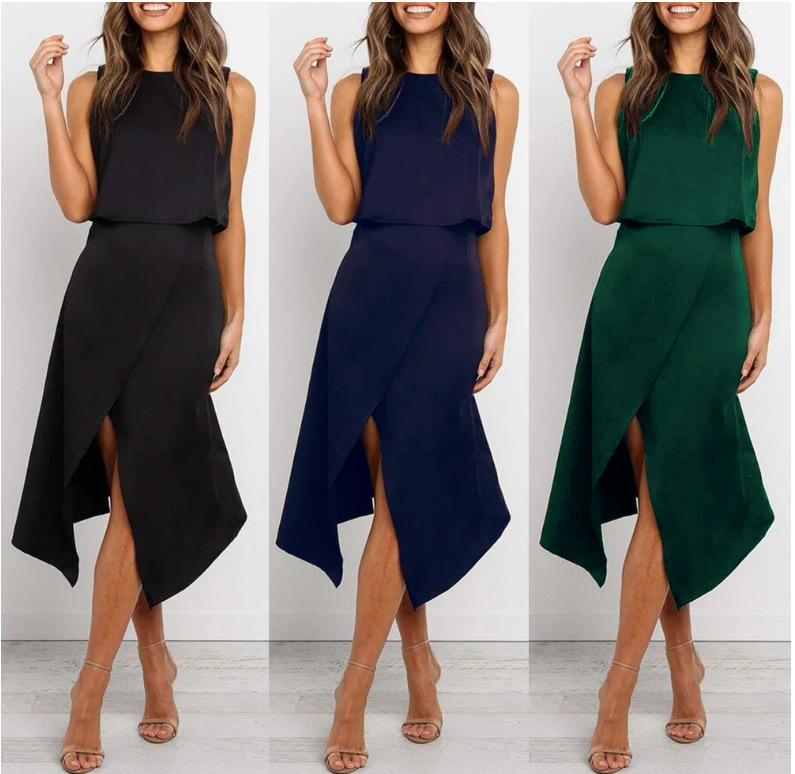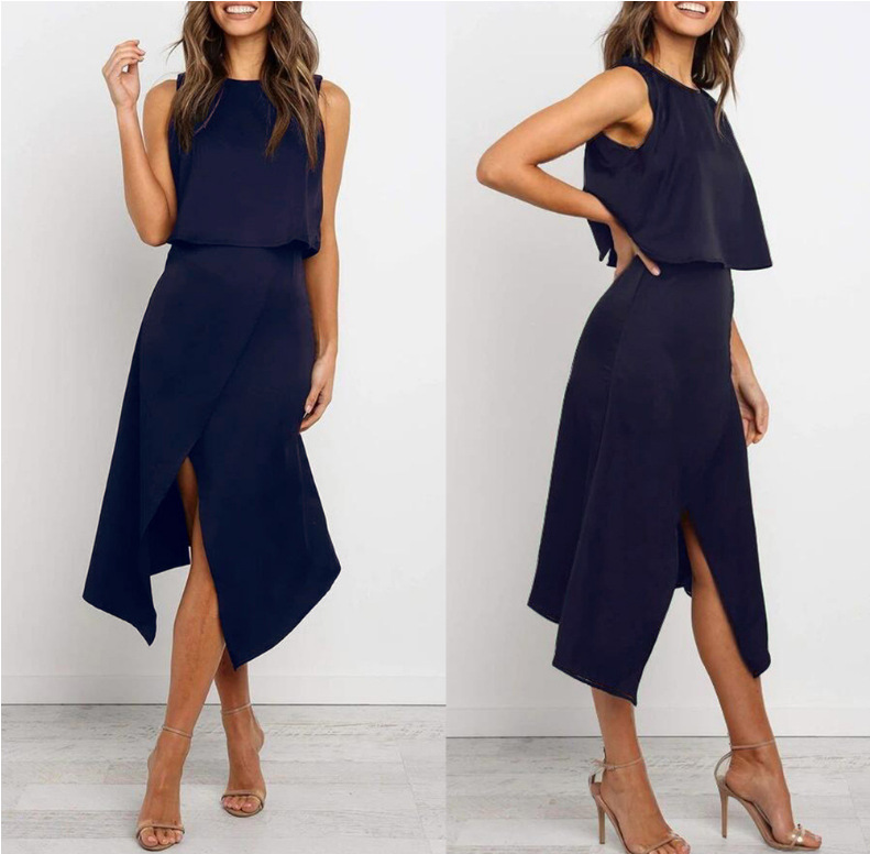 Sleeveless Round Neck Two-piece Set With Irregular Slits