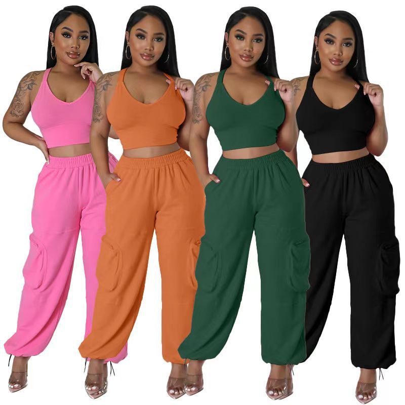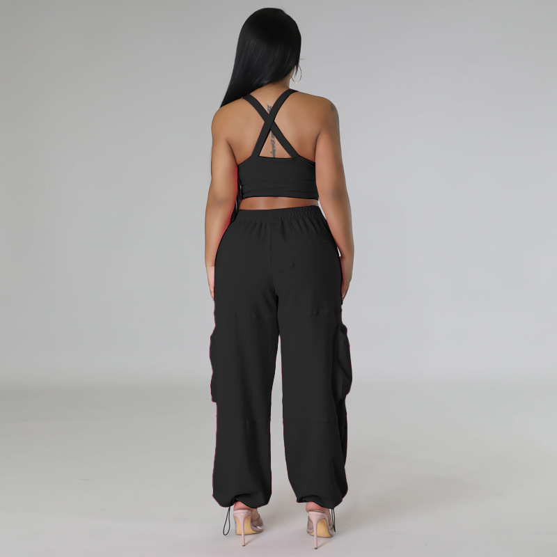 Sleeveless Vest Pocket Wide Leg Pants Casual Women’s Two-piece Suit