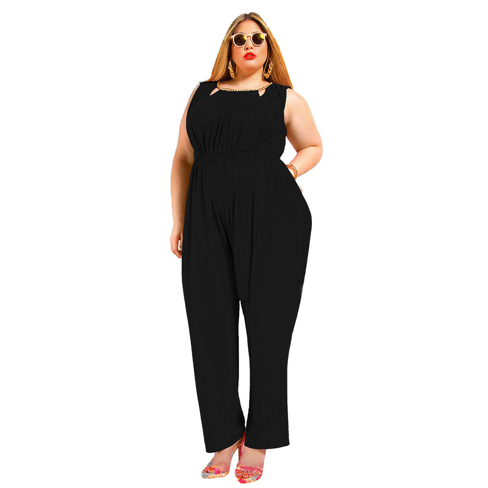 Solid color sleeveless jumpsuit