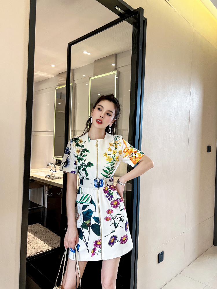 Summer Short-sleeved Floral Dress Pear Shape