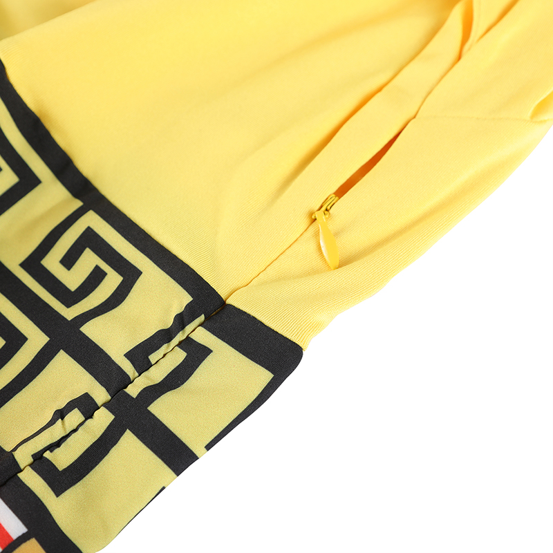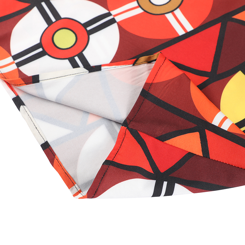 Features: round neck, pleated, printed, contrast color