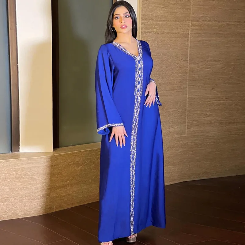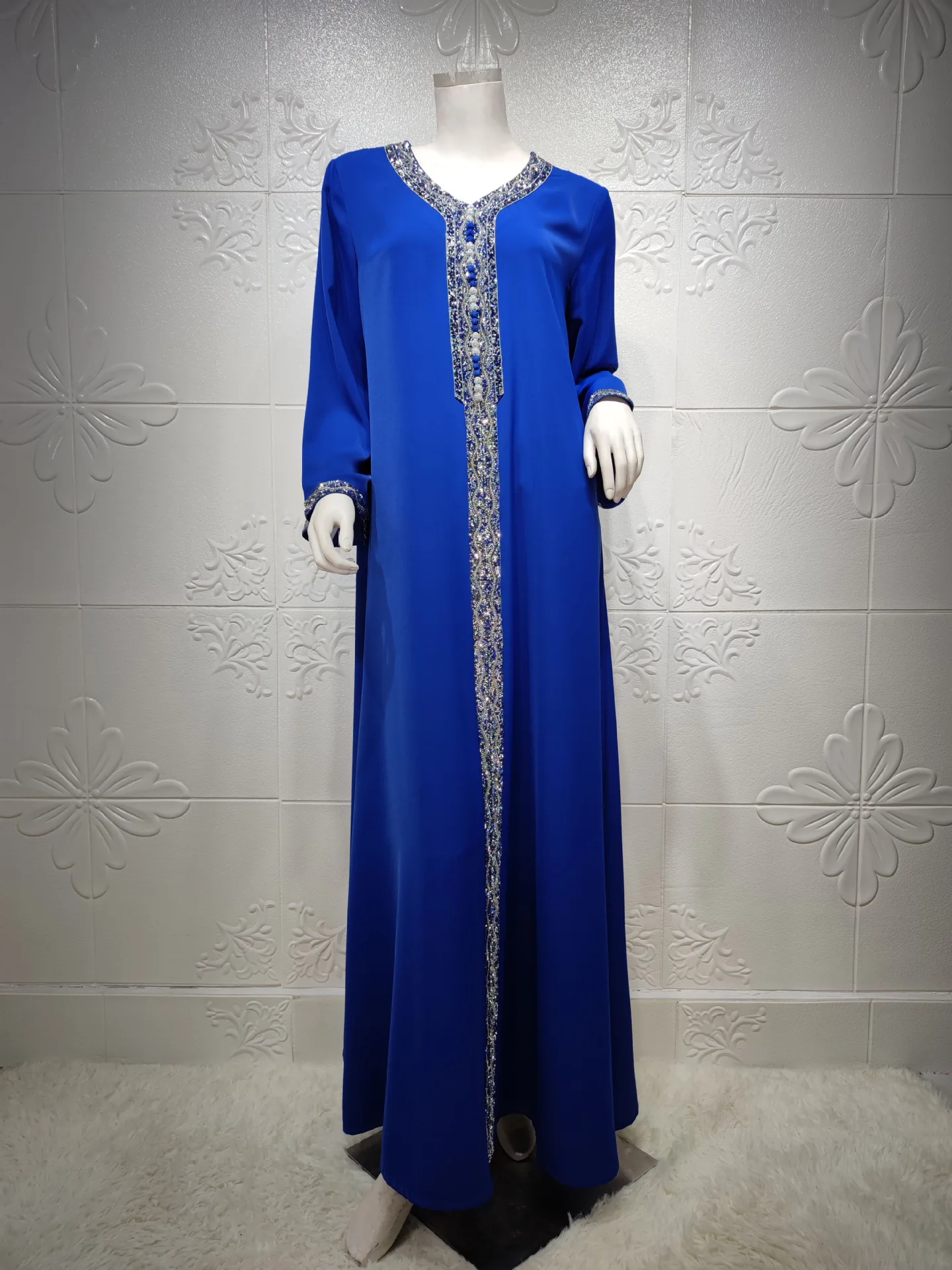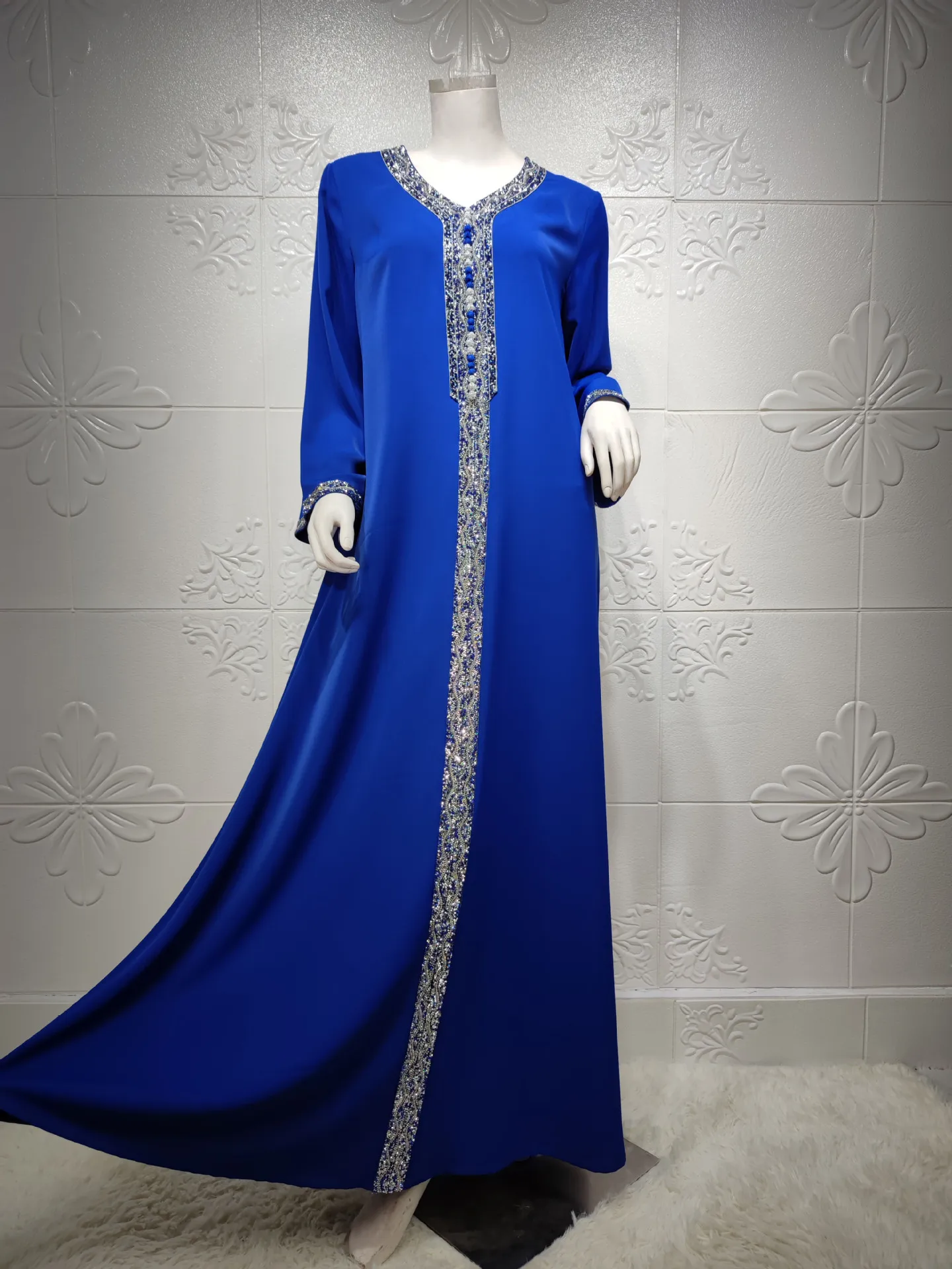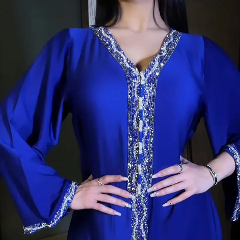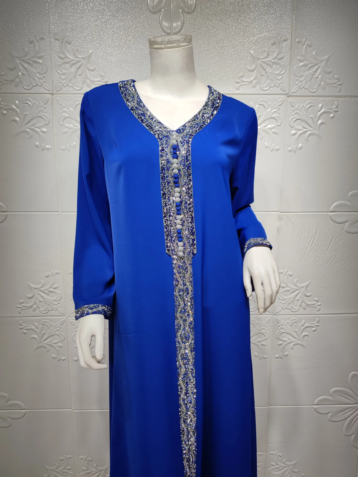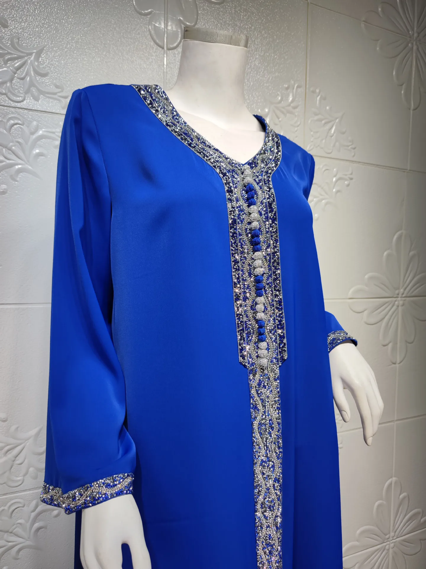 Women’s Blue Hot Diamond Dress Arab Dubai Robe