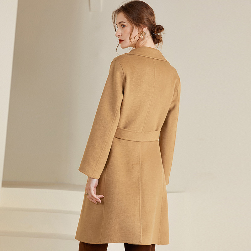 Women’s Mid-length Belt Wool Reversible Woolen Coat
