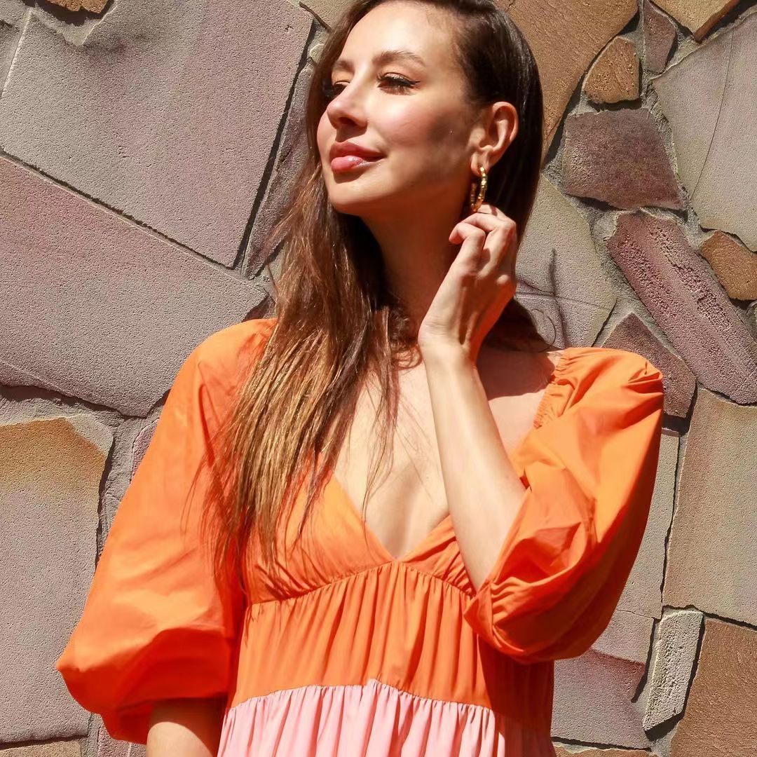 Women’s Stitched V-Neck Sweet Solid Color Layered Dress